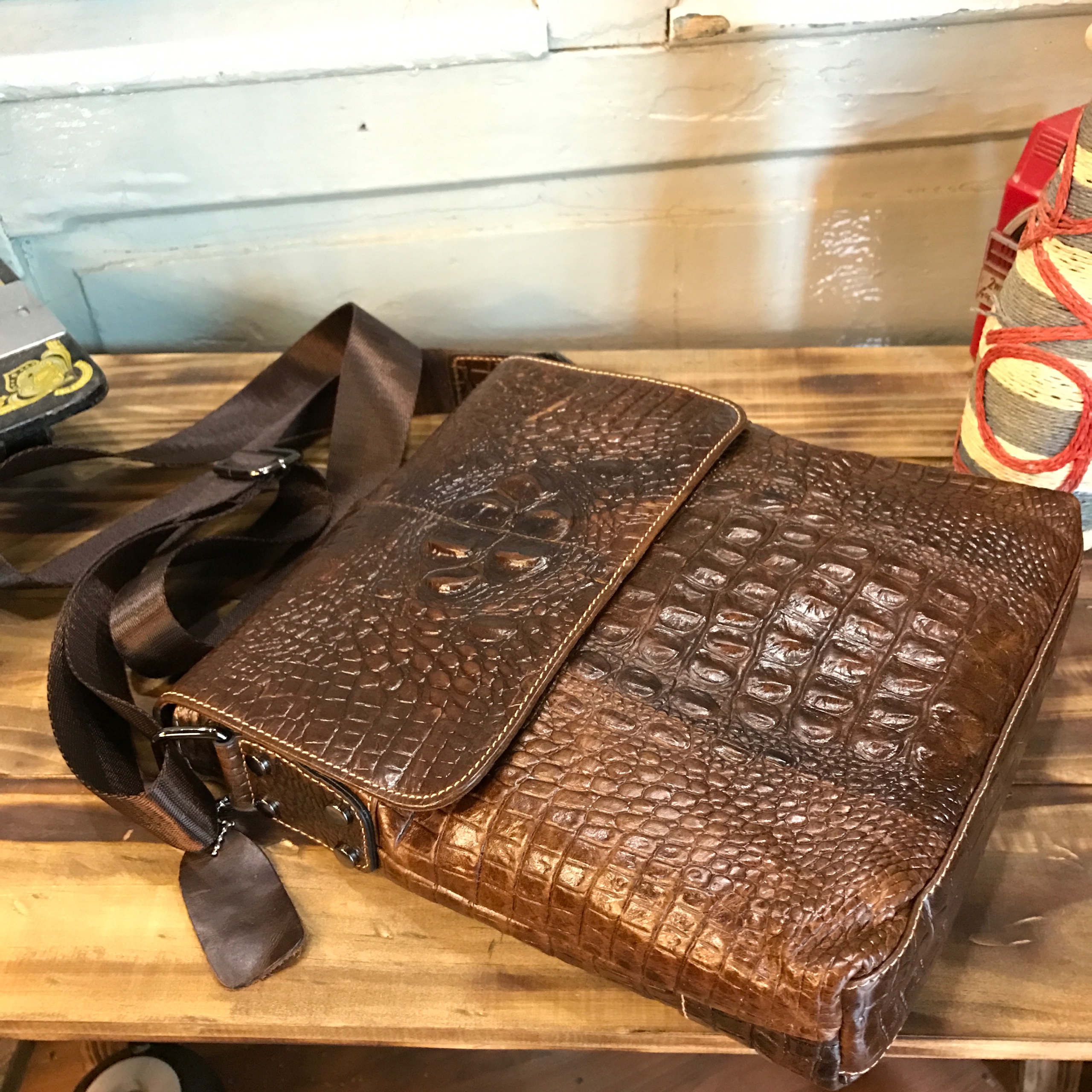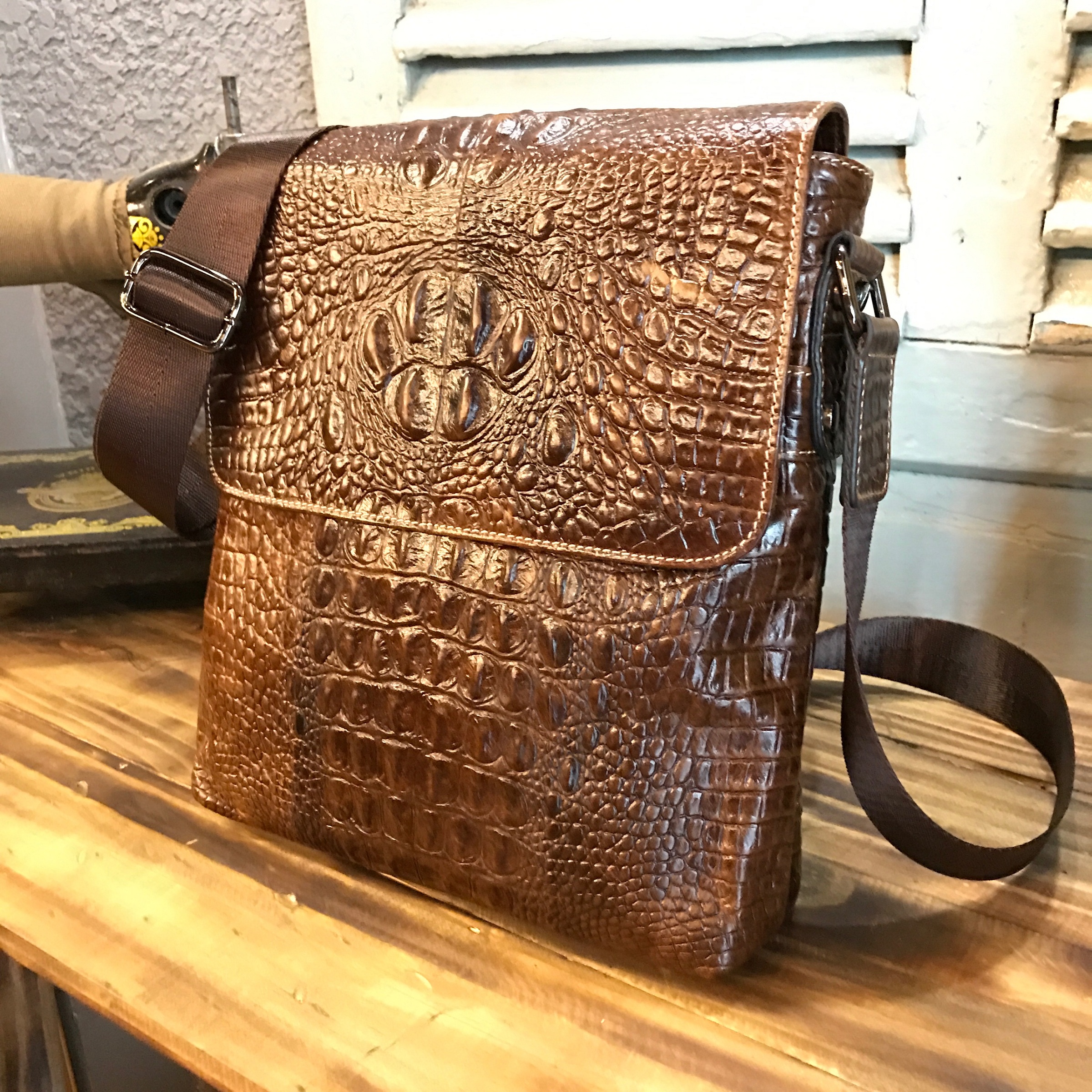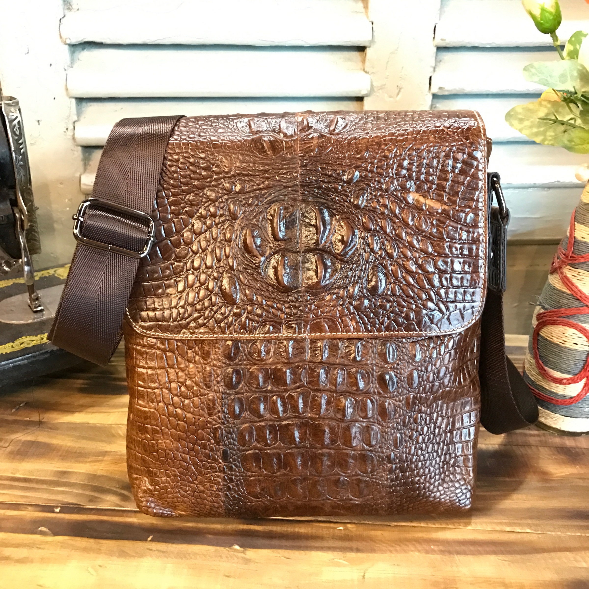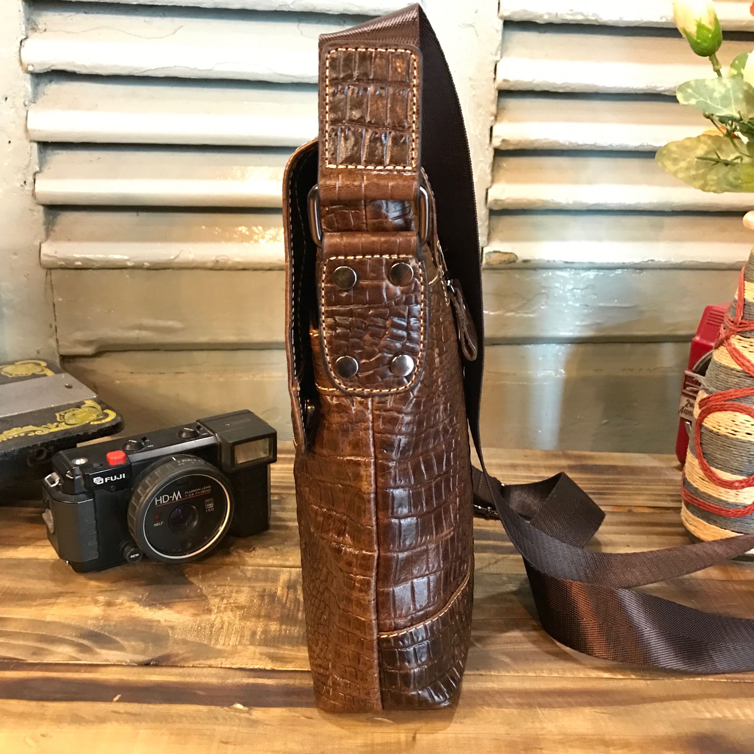 Túi đeo chéo da bò vân cá sấu 402