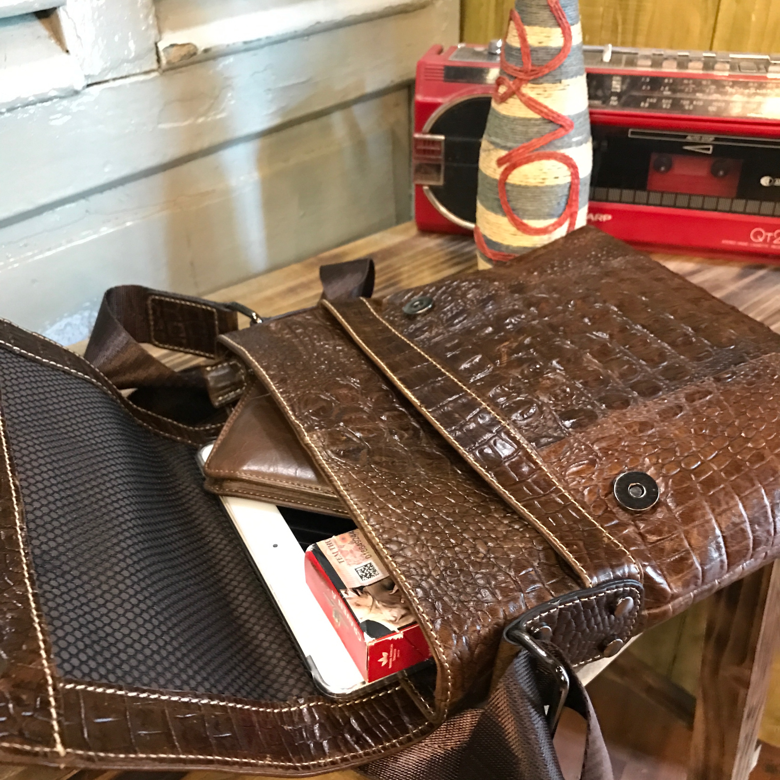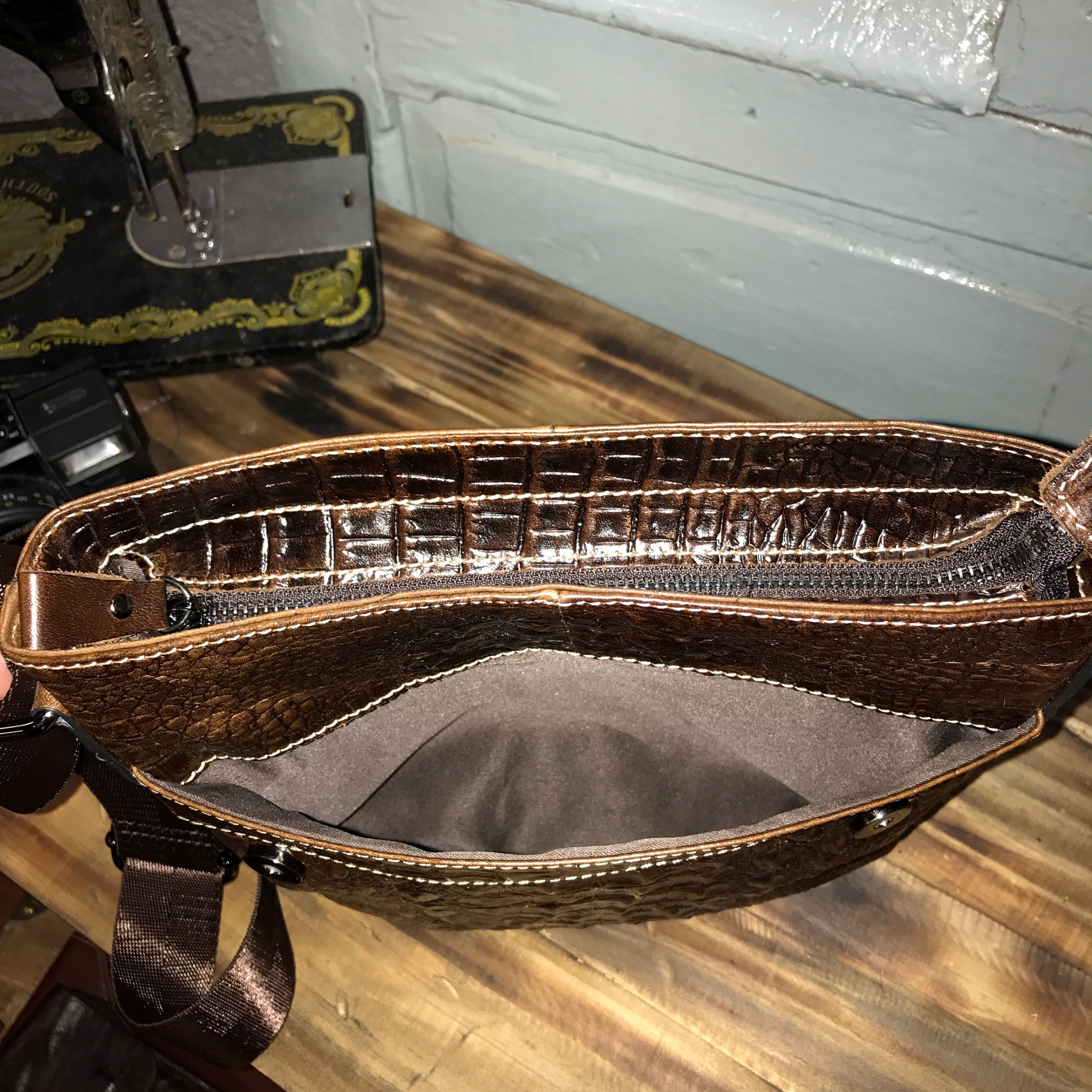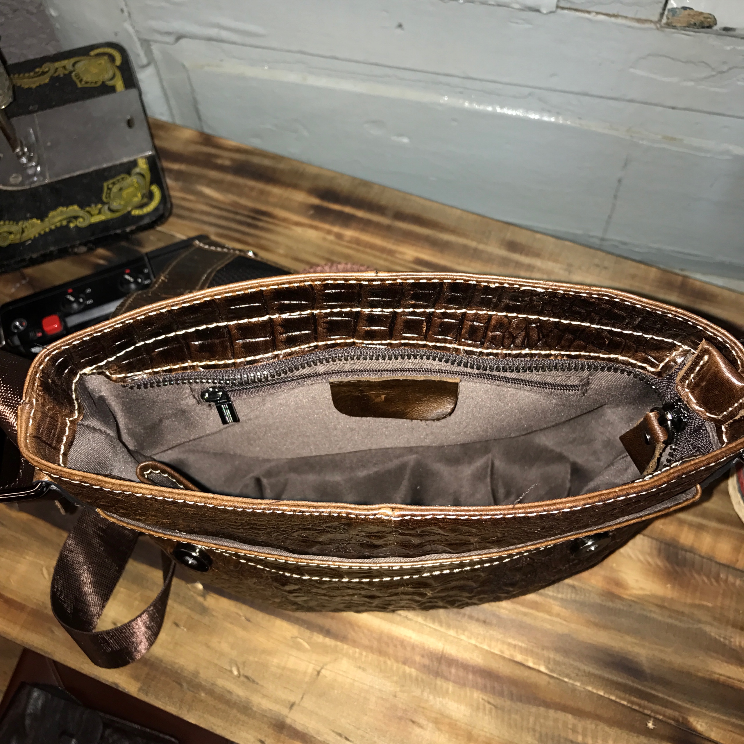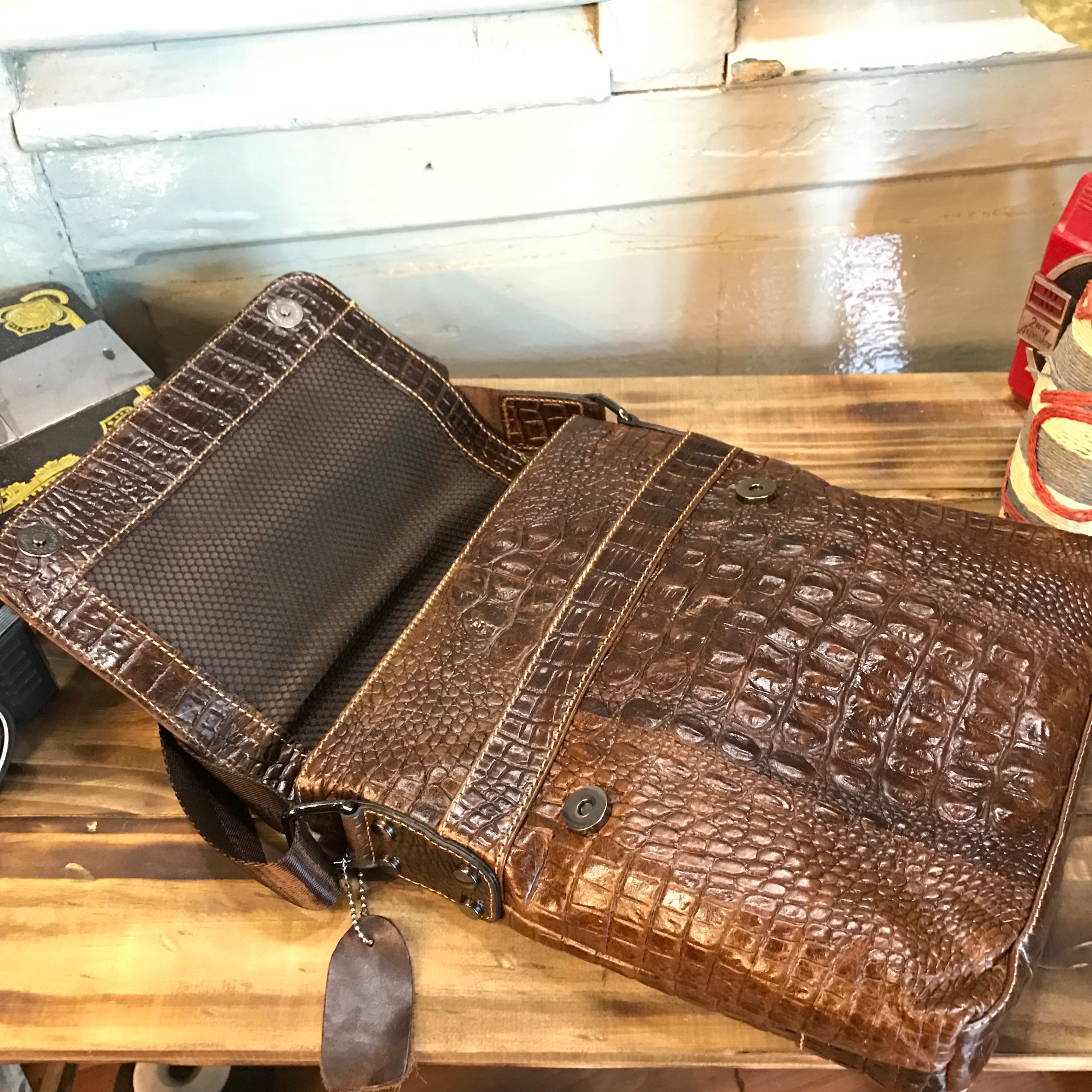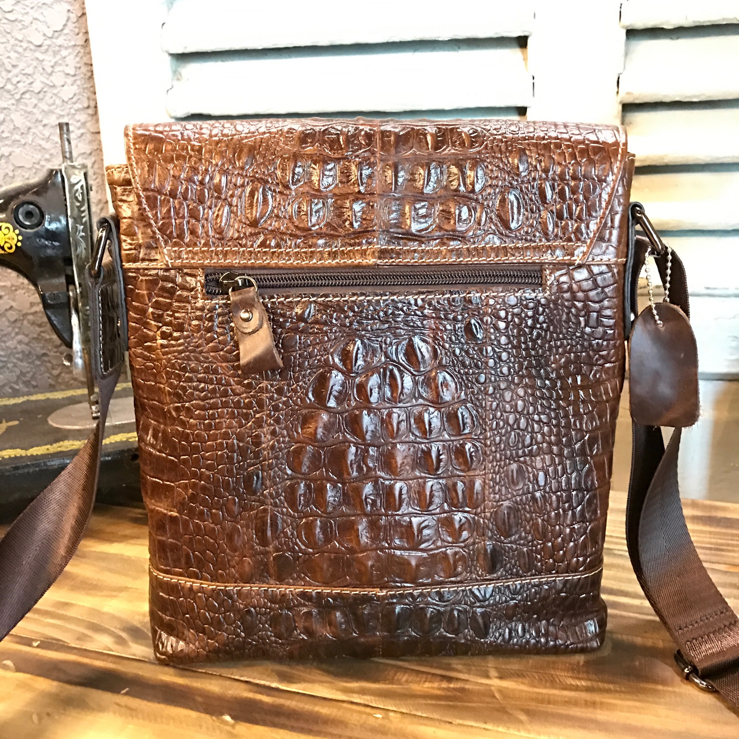 Túi đeo chéo da bò vân cá sấu 402